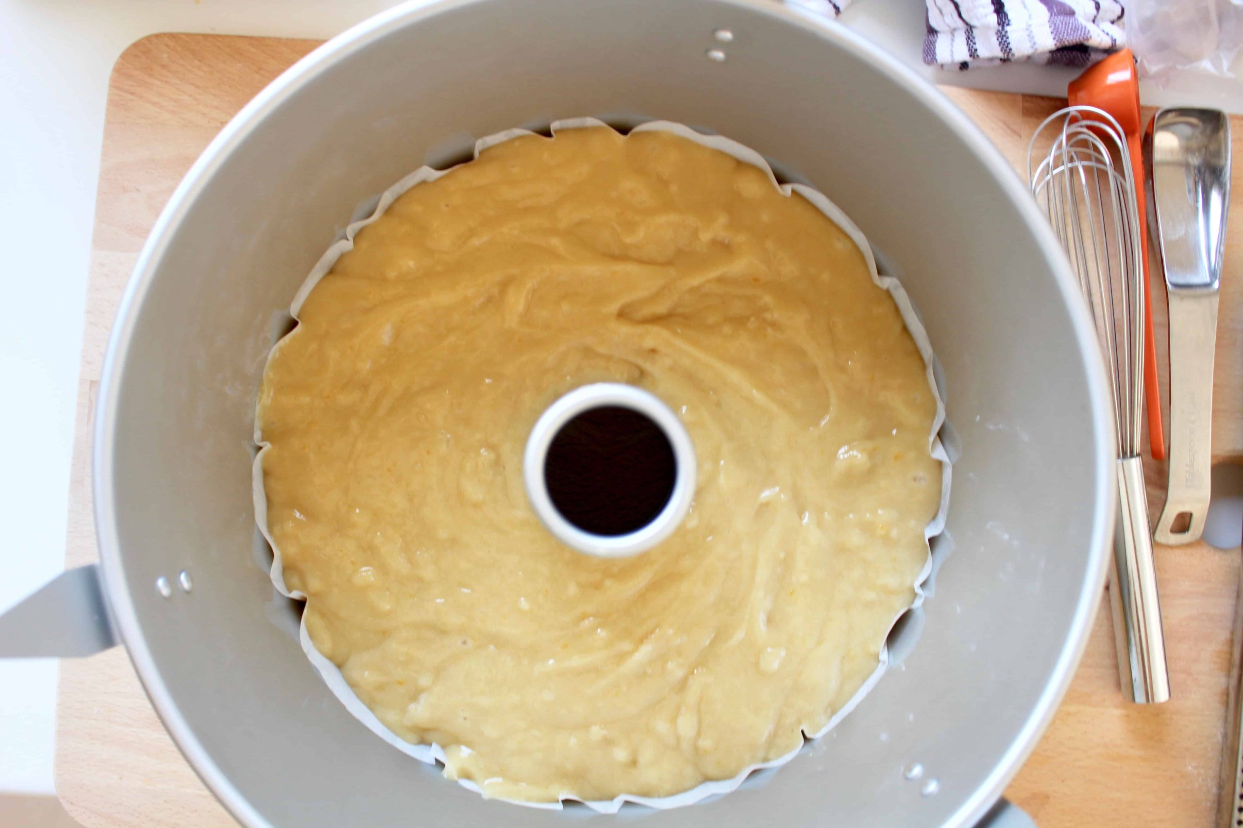 Heat an oven to 350°F and position a rack in the center. Grease a one-piece tube pan generously. (If using an angel food pan with a removable bottom, place a parchment circle bigger than the diameter of the pan on the bottom with the center cut out, pressing the paper into the corner and up the sides an inch or so.)